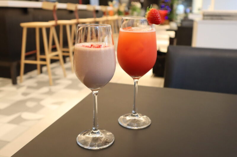 ストロベリーピューレとノンアルコールスパークリングワインのハーモニーをお楽しみください。