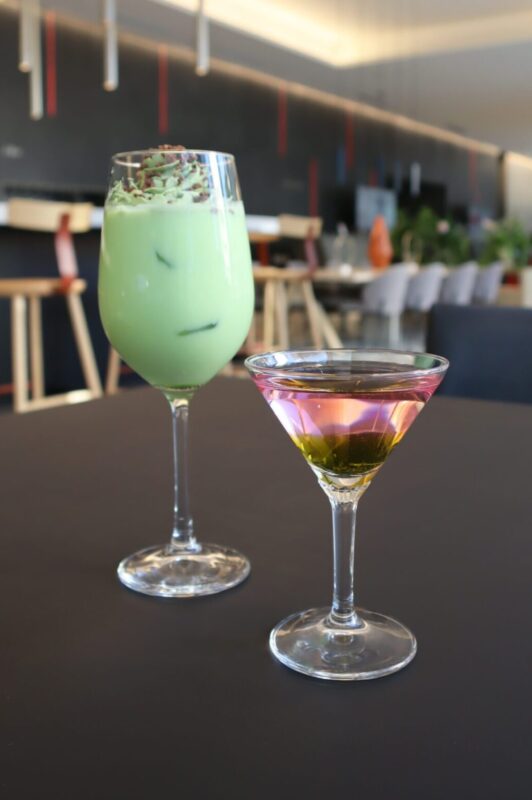 若々しい緑から淡い桜色へのグラデーションを抹茶と桜のリキュールで表現。麗しい春の世界観をどうぞ。