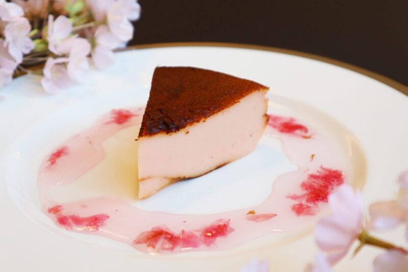 ほんのり桜が香る、なめらかなバスクチーズケーキ。やさしい塩味の桜とレモンの爽やかな酸味を効かせたソースでお召し上がりください。