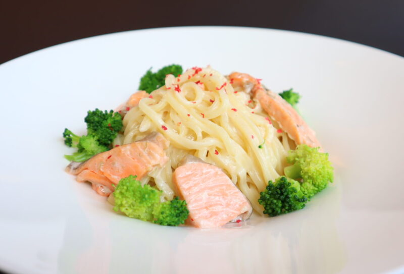 パスタビアンコ:サーモンとブロッコリーのクリームパスタ