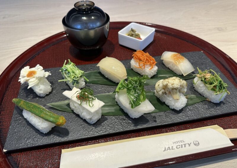 富山県の自然環境や文化、歴史が織りなす土地の個性(テロワール)を感じられる野菜である「とやまテロワールベジ」を使用した当ホテルオリジナルの「富山県産野菜寿司」です。